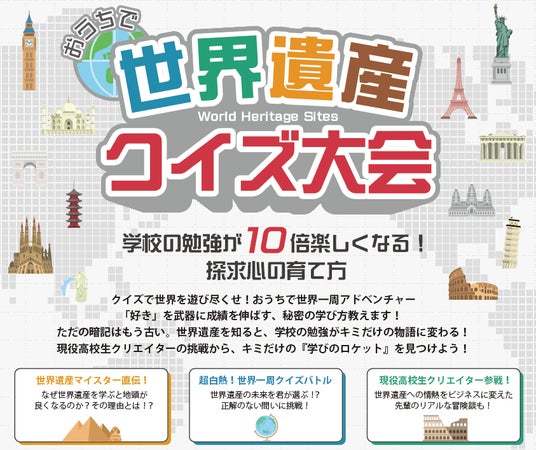 株式会社 学研ホールディングス(東京・品川/代表取締役社長:宮原博昭)のグループ会社、株式会社 学研スタディエ(埼玉・さいたま市/代表取締役社長:亀谷眞宏)は、2026年3月28日に「おうちで世界遺産クイズ大会」を開催いたします。