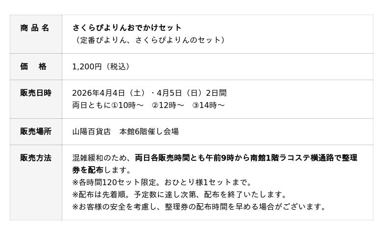 ※「ぴよりん」の販売は4月4日(土)・5日(日)の2日間限定です。