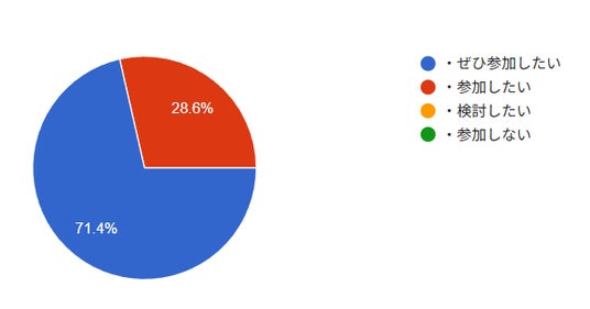 出展企業の満足度も高く、次回の参画意欲も上場参加した地元企業20社を対象としたアンケートでは、「生徒さんと直接お話しできるいい機会だった」「生徒さん達とコミュニケーションを取りながら会社紹介を出来たのが非常に良かった」と、非常に高い満足度をいただきました。次回への意欲: ぜひ参加したい(71.4%)、参加したい(28.6%)