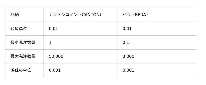 SBIホールディングス株式会社の連結子会社で暗号資産交換業および電子決済手段等取引業を営む SBI VCトレード株式会社(本社:東京都港区、代表取締役社長:近藤 智彦、以下「SBI VCトレード」)は、2026年3月25日(水)メンテナンス終了後から、国内で初めて※1「カントンコイン(CANTON)」および「ベラ(BERA)」を、販売所の現物取引にて取扱い開始することをお知らせいたします。これにより当社の取扱い暗号資産等は全40銘柄となります。