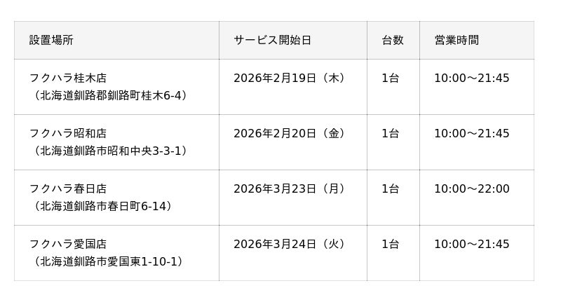 2026年3月までに「フクハラ」の店舗に合計4台設置