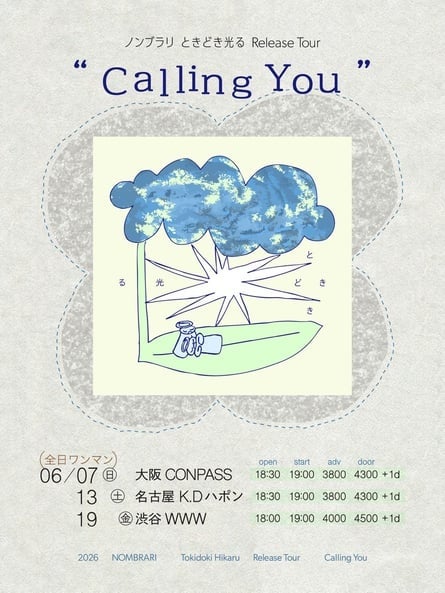 ノンブラリ「ときどき光る」リリース ワンマンツアー“Calling You”