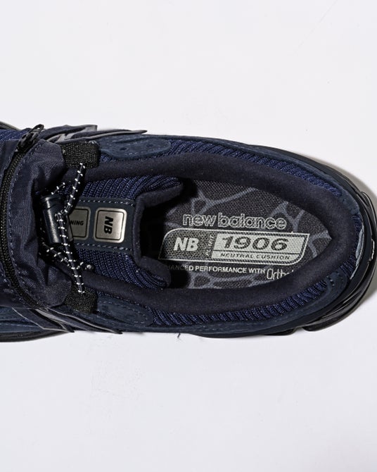 2000年代のランニングシューズを象徴する“1906”を再構築した“1906R”。この質感たっぷりのスウェードとメッシュのアッパーを、“カリフォルニアの夜の海”をイメージしたミッドナイトブルーに別注。ソールカラーもブラックにすることで、シックでスタイリッシュな汎用性の高い1足に仕上げた。またN-ERGYとABZORBのハイスペックソールが、快適な履き心地も約束してくれる。