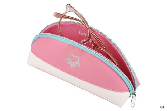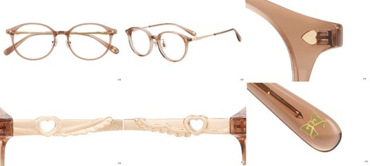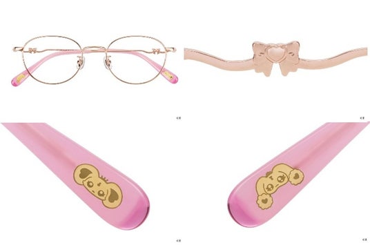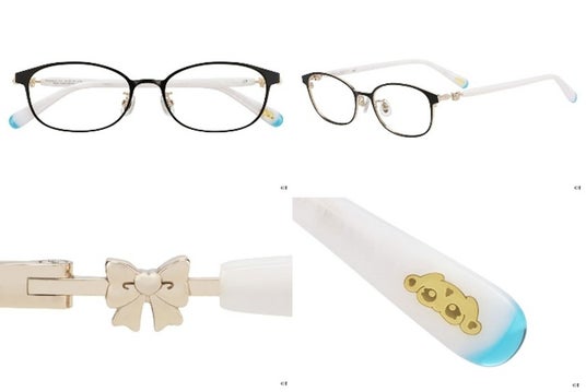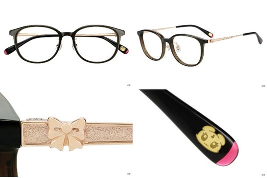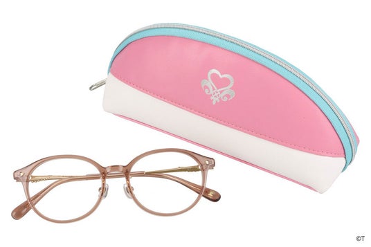 『ふたりはプリキュア』のキュアブラック・キュアホワイト。ふたりの絆をデザインに落とし込んだ特別なメガネ。プレミアムメガネポーチ付き。左右のつるは、よく見るとデザインが異なるアシンメトリーなデザイン。キュアブラック、キュアホワイト、それぞれの衣装に使われているレースをあしらいました。つる先には、ふたりを象徴するリボンを添えて。