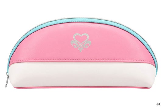 キュアブラック&キュアホワイト プレミアムモデルには、オリジナルケースとメガネ拭きのほか、「プレミアムメガネポーチ」も付属します。ふたりの絆をデザインに込めたオリジナルポーチには、『ふたりはプリキュア』のプリキュアマークがあしらわれています。