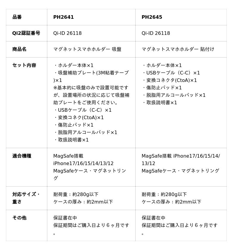また、シリーズのうち2モデル(PH2641 PH2645)はQi2規格に対応したワイヤレス充電機能を搭載。最大15Wの高速充電に対応し、マグネットによって充電位置が正確に合わさることで充電効率を高めます。