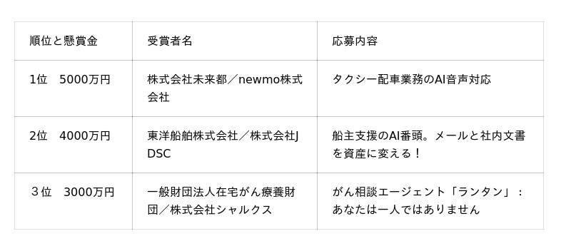 生成AIサービスによる解決が望まれる社会課題・官公庁・安全性の3領域4テーマで表彰
