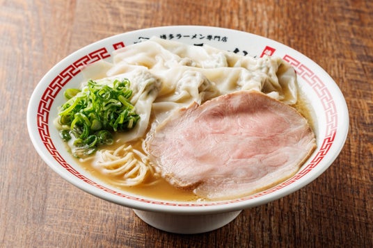のり、味⽟、ワンタン、チャーシューをトッピングした、見た目も豪華で贅沢な一杯。