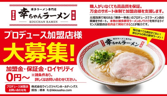 世界10ヵ国90店舗以上を展開するラーメンブランド『博多一幸舎』や『幸ちゃんラーメン』を運営する株式会社ウインズジャパンホールディングス(本社:福岡県福岡市博多区、代表取締役社長:吉村幸助、以下 当社)は、株式会社INNOVATION GROUP(本社:愛知県名古屋市中区、代表:大蔵瞭介)とプロデュース契約を締結し、2026年3月19日(木)18時00分、博多ラーメン専門店『幸ちゃんラーメン 女子大前店』を名古屋市中区栄4丁目にグランドオープンいたしました。