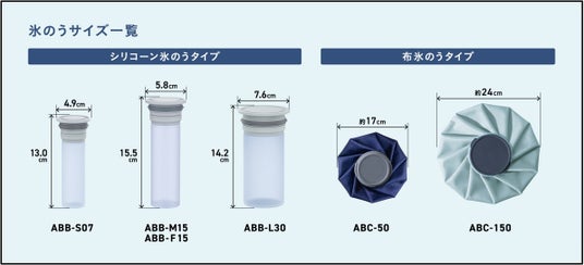 ◆氷のうはシリコーンタイプと布タイプ。それぞれのサイズと使い方
