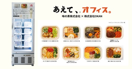 本協業では、OKANが置き型社食(R)︎「オフィスおかん」を通じて蓄積してきた、働く現場における人材定着の知見やサービス提供の仕組みと、味の素グループが創業以来培ってきた「おいしく食べて健康づくり」を体現する高度な冷凍食品開発技術を融合。人手不足に直面する企業の職場環境に求められる多様なニーズに応えるべく、一食完結型の置き型社食(R)︎「あえて、(R)︎ オフィス。」を共同開発いたしました。2026年5月1日(金)より提供を開始します。