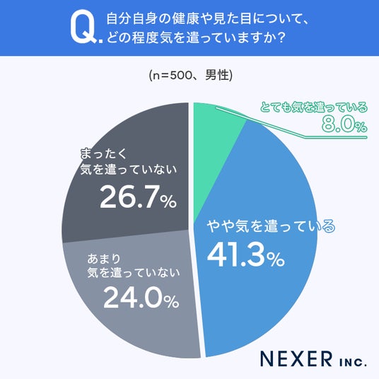 続いて、男性に自分の健康や見た目にどの程度気を遣っているかを聞いてみました。