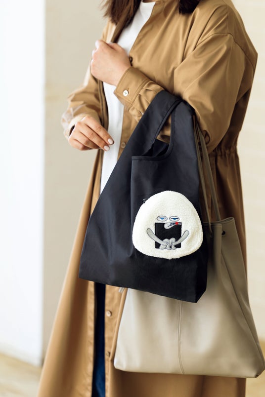 ちょっとした買い物などにぴったりなエコバッグは、折りたたんで収納するとかわいい「おにぎりぼうや」のチャームとしても持ち運びが可能に!