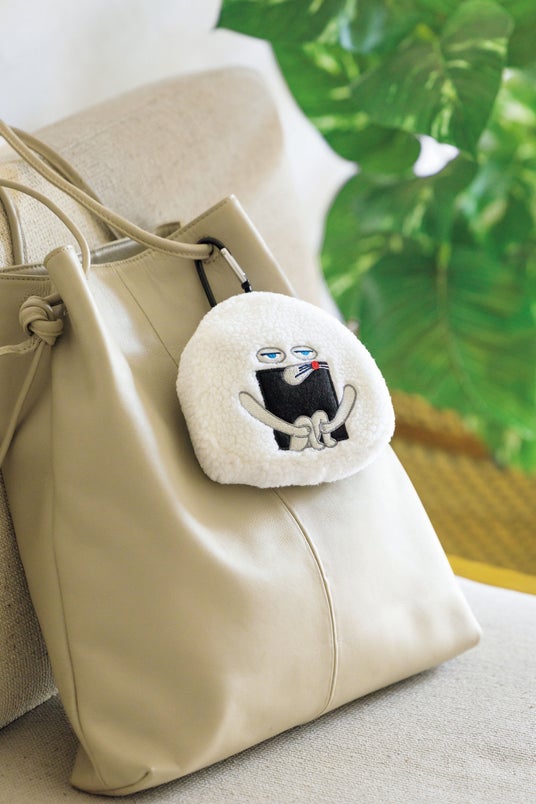 エコバッグを収納するポーチ風の「おにぎりぼうや」は、ちょこんと座る姿がとってもかわいく、毎日のお出かけも楽しくなります。カラビナつきなので簡単に取り付け可能!