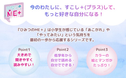 株式会社ポプラ社は、もっとキラキラしたい小学生の「やってみたい!」「なりたい!」という気持ちに寄り添う新シリーズ『ひみつのME+(ミープラス)』を創刊します。第1弾として、『小学生からの最強イラストBOOK』『メイクのひみつ&ルールBOOK』の2冊を 2026年3月25日(水) に同時発売いたします。