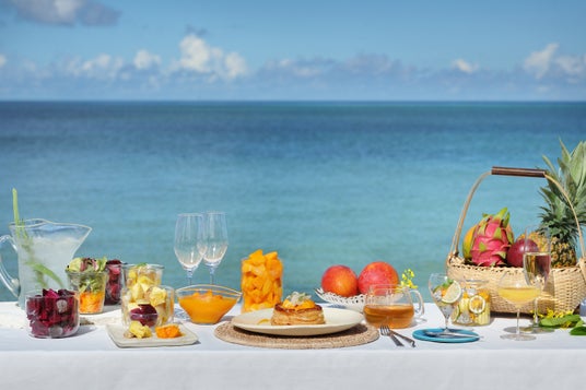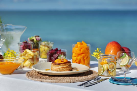 最高峰「星のや沖縄」では、2026年6月1日~8月31日の間、海を臨む特等席で、マンゴーを味わい尽くす夏限定「みーくふぁやー(*1)マンゴー朝食」を提供します。マンゴーをふんだんに使用した朝食は、パイ生地でマンゴーを包んだメインディッシュやフルーツティー、スムージーなど6種類のアレンジで堪能します。太陽の恵みで育まれた果実の甘さと目の前の絶景で、心身を目覚めさせる朝食です。自ら仕上げ、出来立てが味わえるユニークなスタイルで、客室の目の前に広がるきらめく海を眺めながら味わう贅沢なひとときが過ごせます。