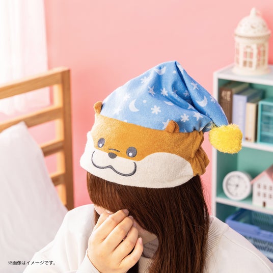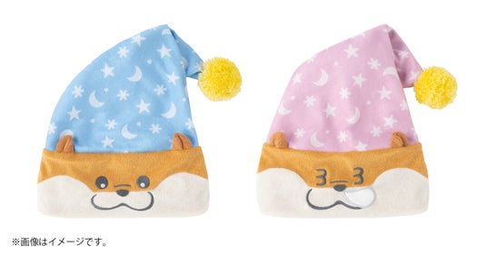 ふわふわのぽんぽんが付いたナイトキャップ。