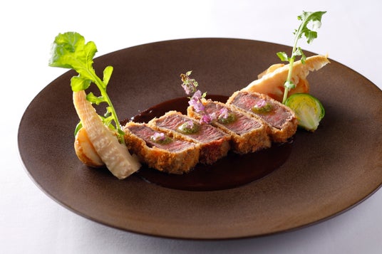 3,080円(パンまたはライス付)佐賀県産黒毛和牛をカツレツにして、自家製デミグラスソースとワサビに見立てたバジルソースで仕上げました。