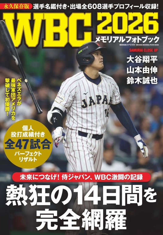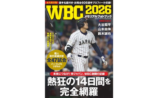 世界文化社は、2026年ワールドベースボールクラシックの全47試合を、圧巻の写真と精緻な記録で完全収録した『WBC2026メモリアルフォトブック』を3月26日(木)に発売します。侍ジャパンの連覇への挑戦、その裏側にあったドラマ、そして世界の強豪がぶつかり合った名勝負の数々――歓喜も悔しさも余すことなく刻んだ、ファン必携の永久保存版です。