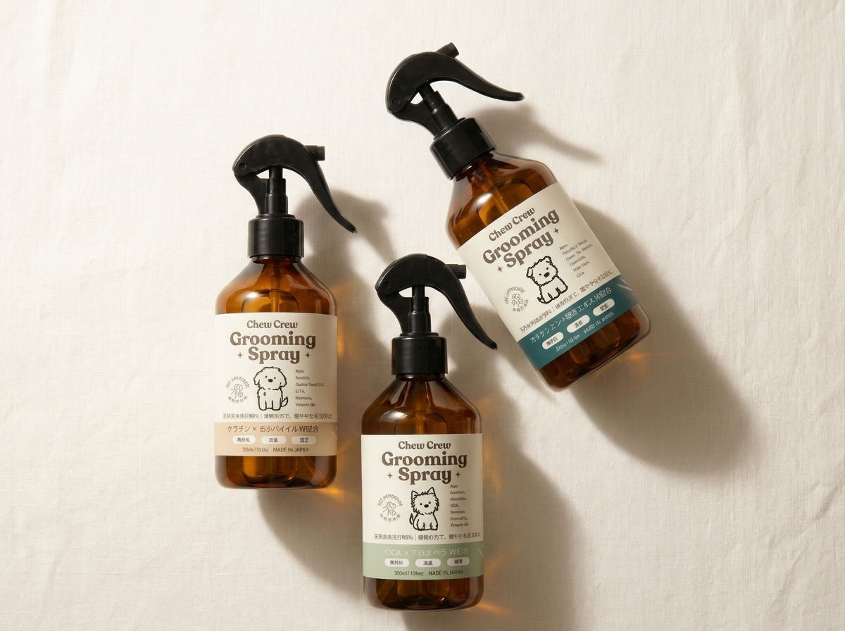 CHEW CREW、愛犬の被毛と皮膚に“美容液レベルの処方”を届けるグルーミングスプレー「Shine」「Calm」を4月1日より発売 -
