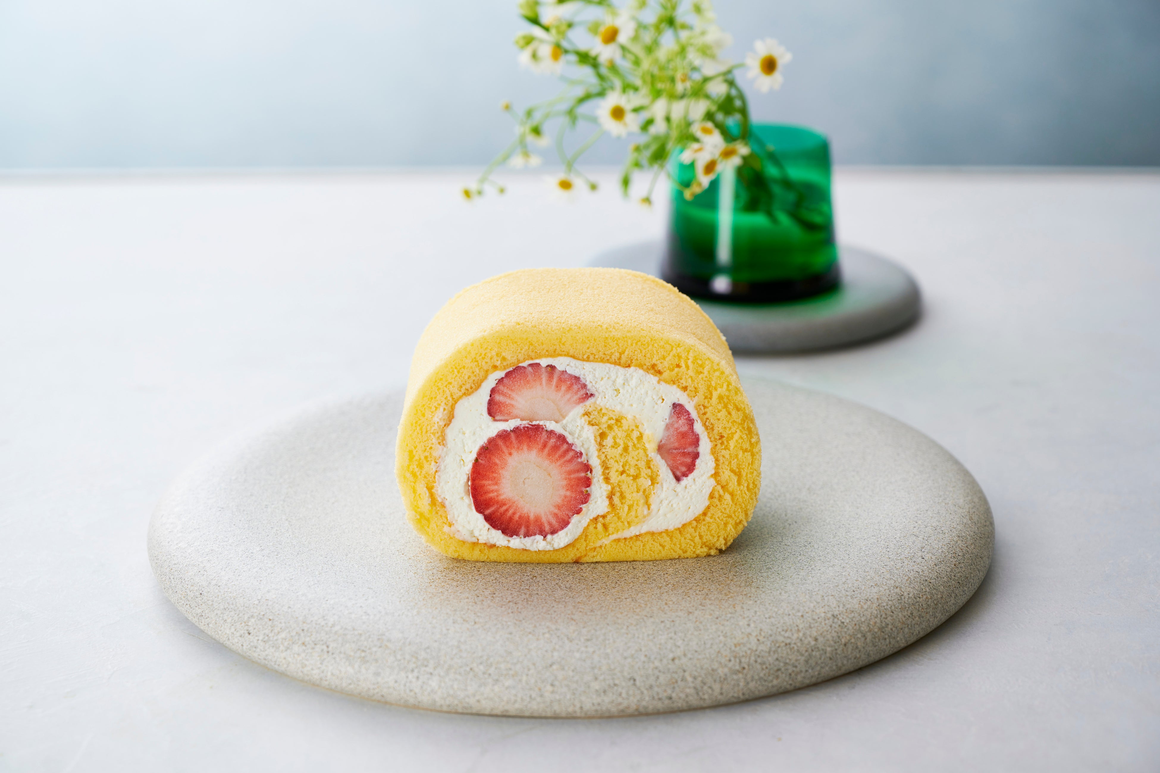 旬のいちごをたっぷり使い、いちごの酸味とクリームの甘さがバランスよく合わさったオリジナルロールケーキ。北海道産の小麦粉とバター、産み立て卵で作ったスポンジで、コクのある生クリームといちごを巻き込みました。