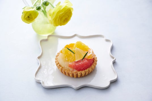 日向夏や甘夏、清見やブラッドオレンジなど、今が旬の柑橘を味わえる春にぴったりのみずみずしいタルトです。フロマージュブランを加えたカスタードクリームとサクサクのパイ生地の組み合わせをお楽しみください。