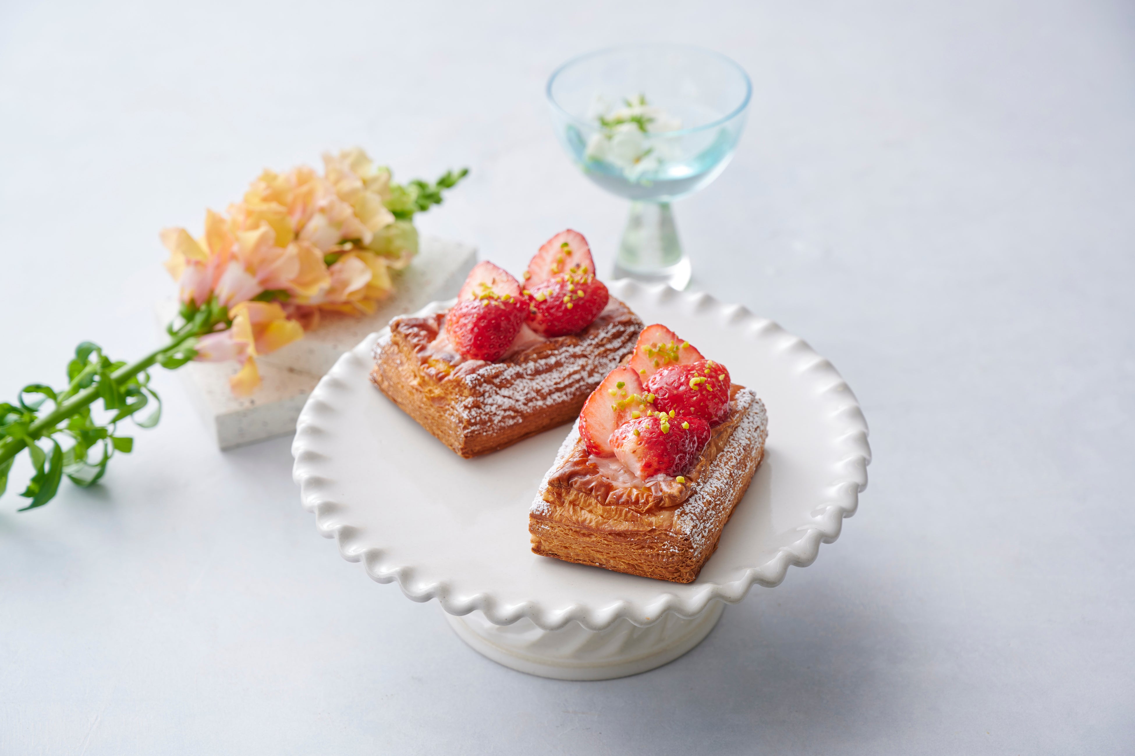 カスタードといちごミルククリームをのせたサクサクのデニッシュに、甘酸っぱいいちごとピスタチオをトッピング。ケーキのような見た目が可愛らしい春のデニッシュです。自分へのご褒美にはもちろん、手土産としても喜ばれます。