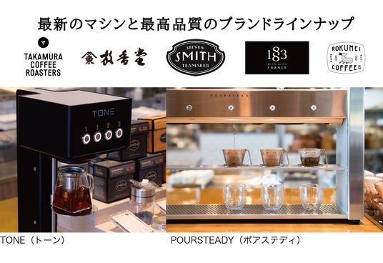 そして、全長10メートルの「ビバレッジバー」では、世界的に評価されるスティーブンスミスティーメーカーの紅茶、ロースタリー直送のスペシャルティコーヒー、茶師厳選の放香堂の日本茶など、こだわりのドリンクを心ゆくまでお楽しみいただけます。