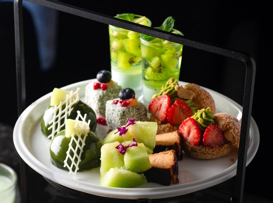 初夏の訪れとともに、心潤うグリーンの世界へ。 5月1日より3ヶ月間、厳選された国産メロンの瑞々しい甘みと、香り高い抹茶を主役にした「新緑のアフタヌーンティー」が登場いたします。