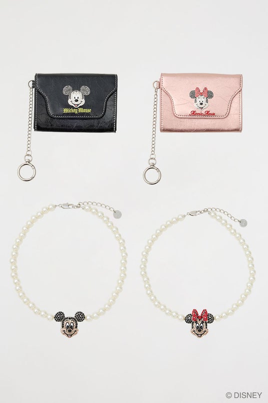 アーカイブアートより厳選した、仲良く肩を組むアートをアップリケ刺繍で表現したハンド/ショルダーの2WAYバッグ。ラインストーンのロゴやキャラクターのお顔が煌びやかに映えるスクエアバッグ、カードケース、パールネックレスなど、コーディネートのアクセントになる小物も豊富にラインナップしました。