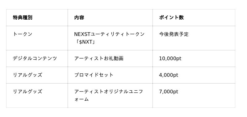 本機能の追加により、プレイヤーはゲーム内で獲得した「でぃあすと!ポイント」を、NEXSTのユーティリティトークン「$NXT」やアーティストのリアルグッズ、デジタルアイテムなど、さまざまな特典と交換することが可能になります。
