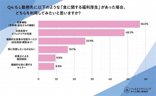 ・56.0%が利用したい「食に関する福利厚生」は「食事補助」と回答