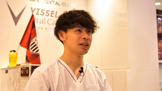 ヴィッセル神戸様には地元サポーターの生きがいとして走っていただきつつ、選手の力の源として「口腔機能」が重要であることを発信したいと考えております。歯医者には「怖い」「痛い」というマイナスなイメージがありますが、スポーツの力を借りてそのハードルを下げ、治療ではなく綺麗な状態を保つ「予防」の大切さを伝えていくことで地域に貢献していきたいです。