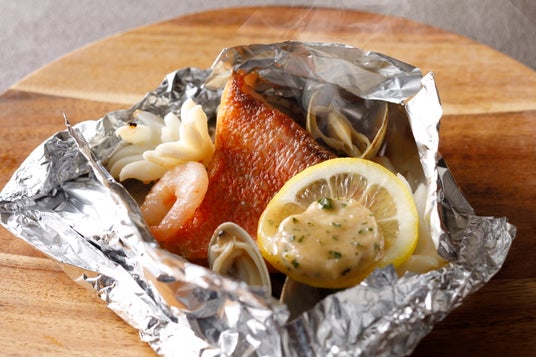 ・シーフードホイル焼き(赤穂鯛、海老、イカ、あさり)