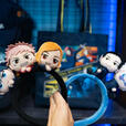 ポーチはぬいぐるみを入れて持ち歩ける、片面クリア素材。