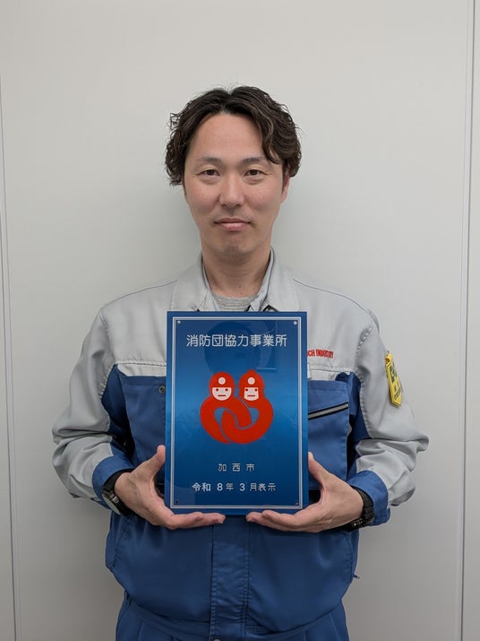 パンチ工業株式会社は、兵庫県加西市より兵庫工場(加西市)が2026年3月1日付で「消防団協力事業所」の認定を受けたことをお知らせいたします。