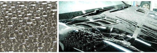 高い撥水性とスリック性により、水滴が丸く弾かれ、素早く転がり落ちます