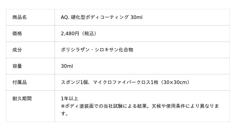 株式会社オートバックスセブン(代表取締役 社長:堀井勇吾)は、プライベートブランド「AQ.」(オートバックス クオリティ.)の新製品として、プロ品質の高耐久ボディコーティングをラインアップに追加し、全国のオートバックスグループ店舗、およびオートバックスドットコムにて販売を開始しました。