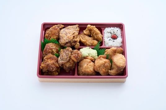 ご飯は添えるだけ。からっ鳥の9種類のからあげが一折につまった満足感あふれる弁当です。