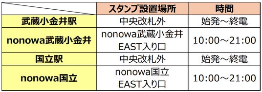 2.武蔵小金井駅・国立駅・nonowa国立・nonowa武蔵小金井にあるスタンプを台紙へ押印。