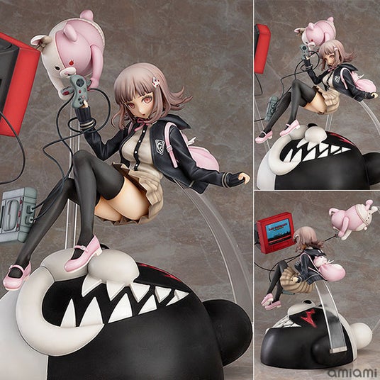 2人を狙う迫力満点のモノクマ台座で、作品の世界観もバッチリ演出いたしました!あみあみにて予約受付中。