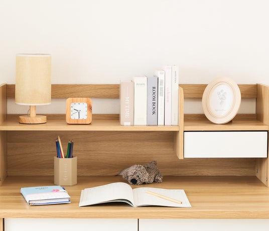 かつては存在感のある大型タイプが主流だった学習机も、現在はリビング学習を前提に「コンパクト化」が進んでいます。圧迫感を抑えたサイズ設計や、インテリアに溶け込むナチュラルなデザインが支持される一方、教材やデジタル機器が増える今の学習環境では、収納力との両立が新たな選択基準となっています。
