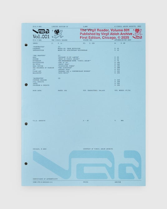初日となる3月28日(土)は、「The Virgil Reader, Volume 001」をはじめ、「V.A.」でしか手に入れることのできない「VIRGIL ABLOH ARCHIVE(TM)」のTシャツや「FRAGMENT」と「VIRGIL ABLOH ARCHIVE(TM)」のコラボレーションTシャツ、ジップフーディがラインアップ。