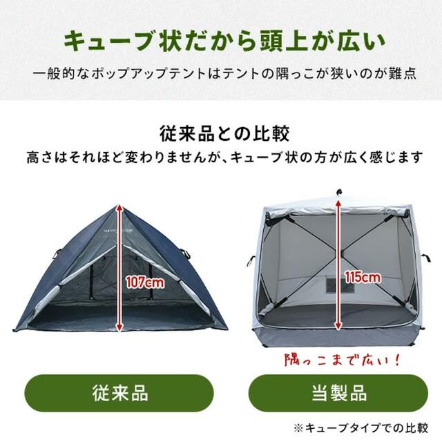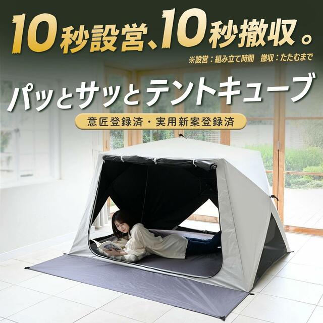 「傘みたいに広げるだけ パッとサッとサンシェード キューブ」は、手軽さと快適さを兼ね備えたサンシェード。10秒設営・撤収と遮光率99.9%の安心感で、アウトドアのハードルをぐっと下げてくれますよ。