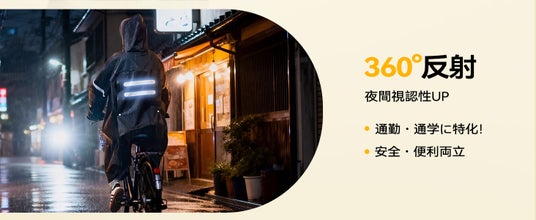 ~JIS L 1030規格準拠の圧倒的な防水性と、360°反射シートによる安全性を両立。自転車通勤・通学をより快適に~