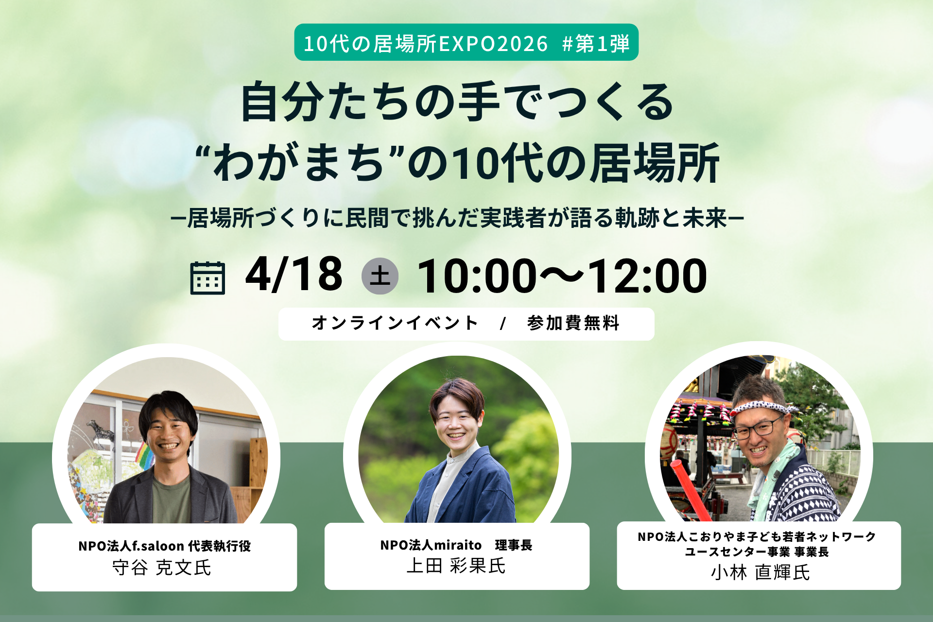 【イベント1.】自分たちの手でつくる、“わがまち”の10代の居場所―居場所づくりに民間で挑んだ実践者が語る軌跡と未来