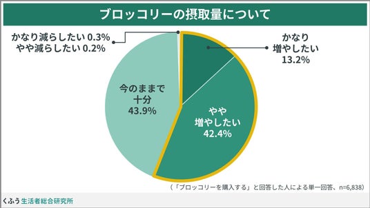 現状のブロッコリーの摂取量については、「増やしたい」と回答した人が半数を超えました。
