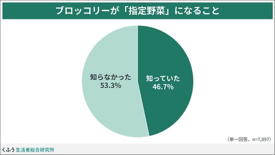 調査ではブロッコリーが指定野菜となることを知っている人は約半数(46.7%)でした。