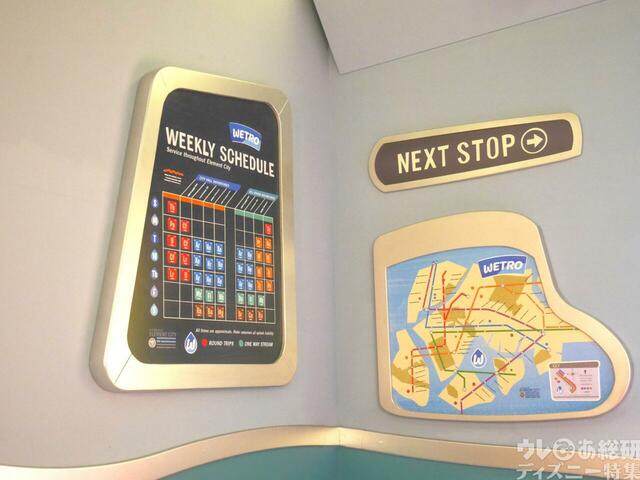 エンバーとウェイドの2人はもちろん、車窓から見えるエレメント・シティの風景や、車内に掲示されているポスターや時刻表などもとっても再現度が高いので、ぜひ車内のすみずみまで観察してみて。