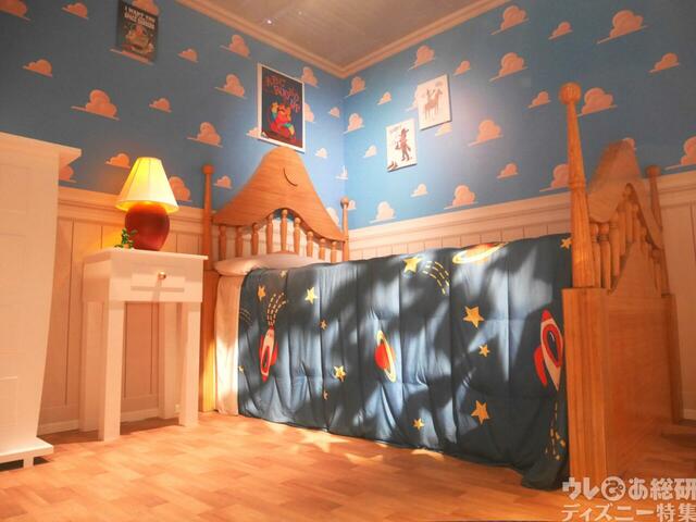 ピクサー作品でも屈指の人気を誇る『トイ・ストーリー』のお部屋では、アンディの部屋をそのまま再現。